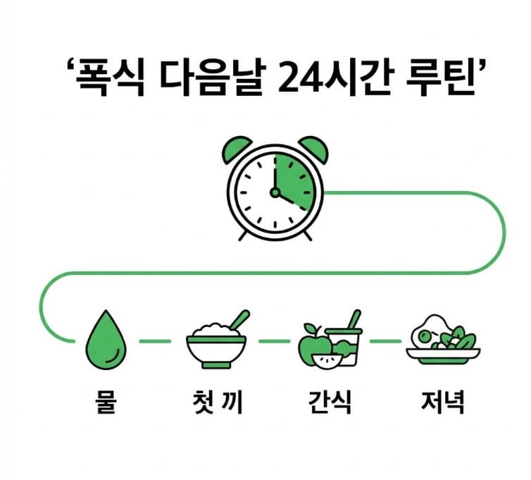 폭식 다음날 24시간 루틴 (아침~밤, 시간대별로 따라하기)